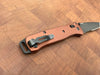 The Bailout® family of tactical folders has long been revered for its combination of no-holds-barred strength and slim, ultralight build, making it an impressive tool on the trail or on the job. The new 537SBK-07 Bailout® introduces CPM-MagnaCut stainless super steel with enhanced corrosion-resistance in a DLC Battlewash finish. Together with lightweight, diamond-textured Burnt Copper anodized aluminum handle scales and black oxide hardware, this ruggedized ultralight is ready for the next adventure.