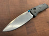 The 535-3 Bugout knife is built with a carbon fiber handle and a satin finished blade with a plain cutting edge. The Benchmade Bugout offers a lightweight, ergonomic build designed with everyday carry and general outdoor use in mind. Its super premium CPM-S90V blade sports a partial swedge to provide a finer point, and comes fitted with blue anodized, dual thumb studs for easy one-handed operation.