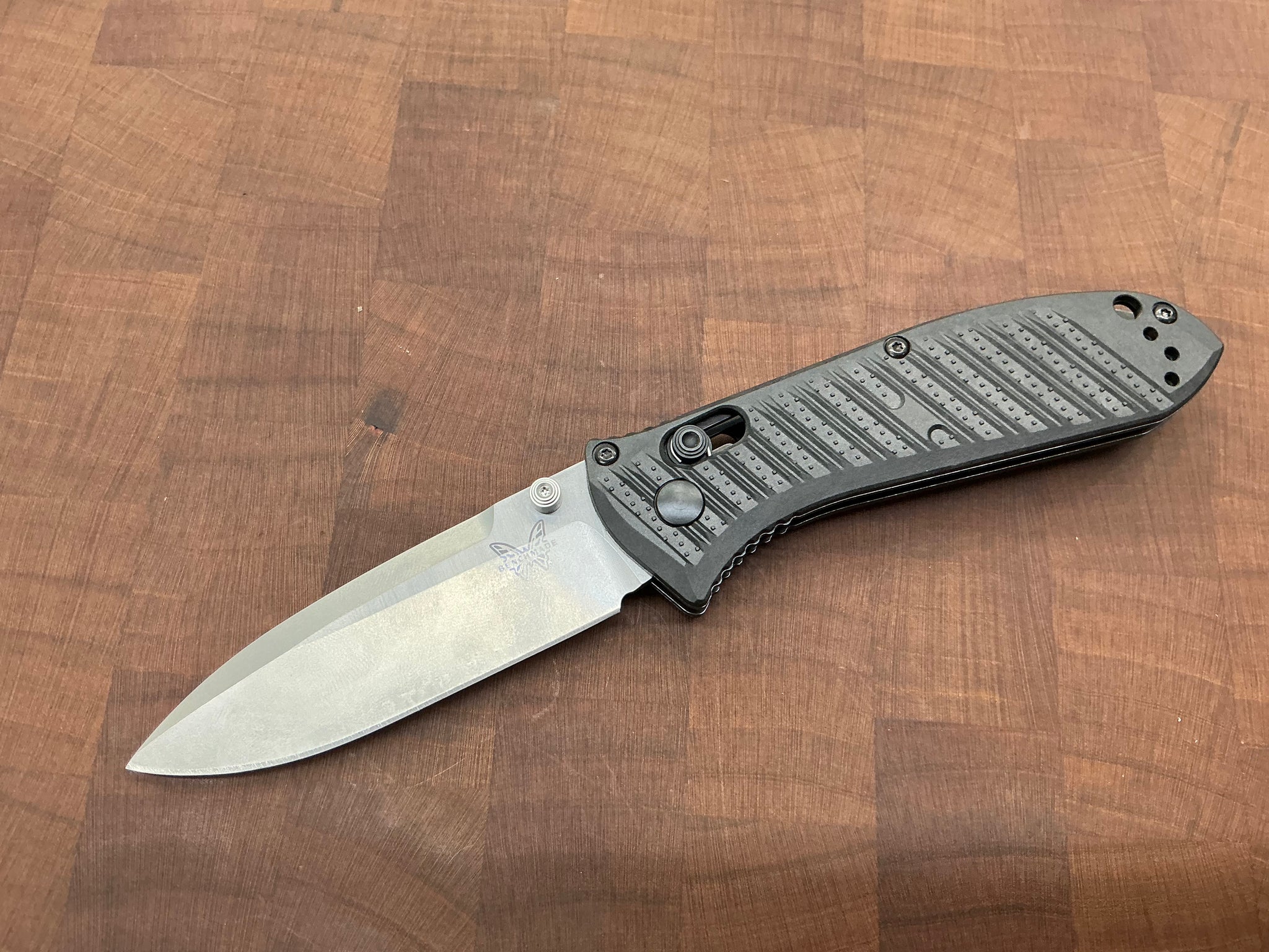 Benchmade has updated their legendary Presidio model with a smaller profile and significant ergonomic and performance upgrades. This combat legend has a black CF-Elite™ handle with Benchmade's AXIS lock system for effortless one-handed opening and closing. Molded grooves in the handle improve grip while adding a modern flair to the design. The Mini Presidio II offers a compact EDC design with all of the tactical applications of the original.