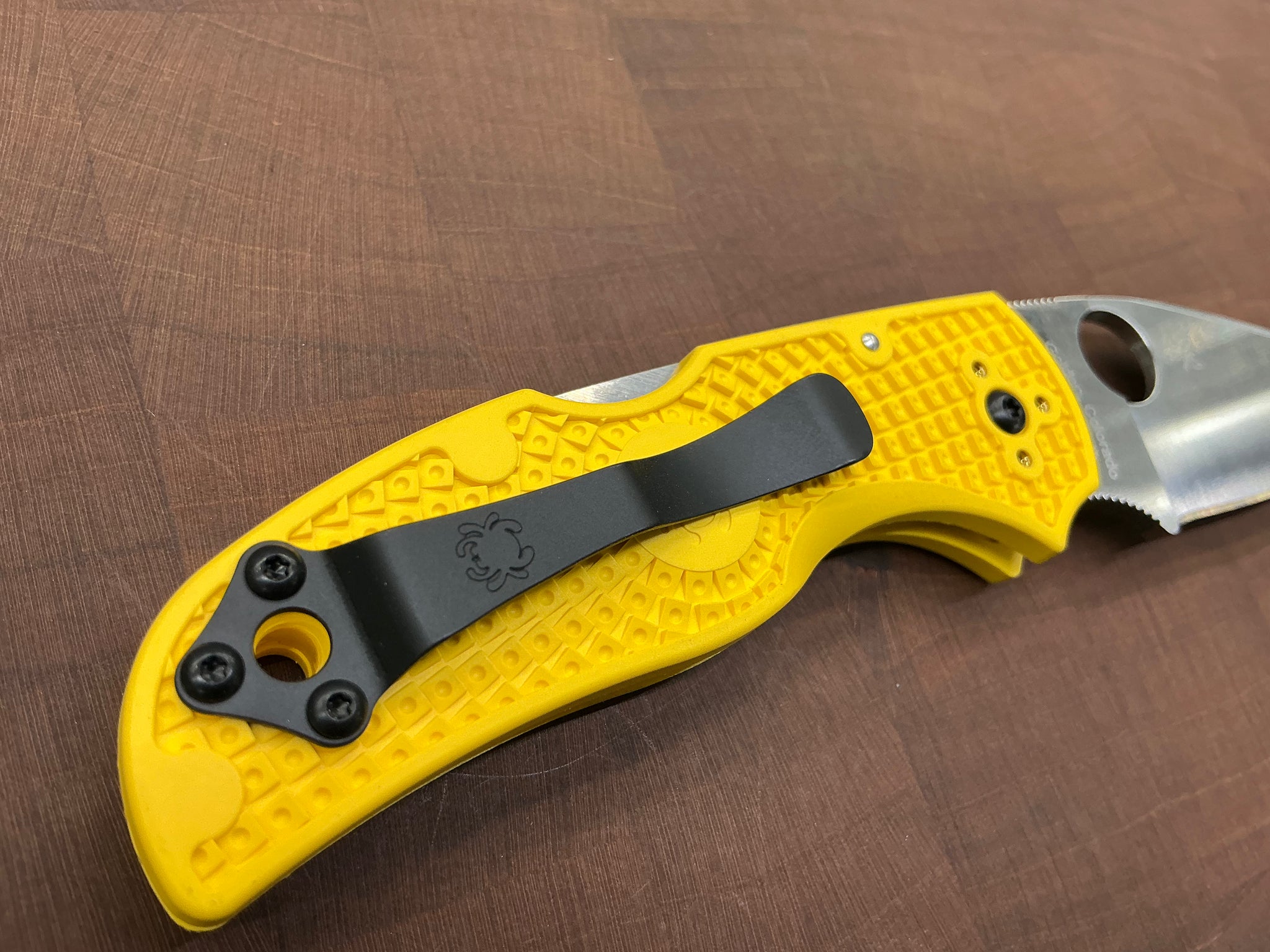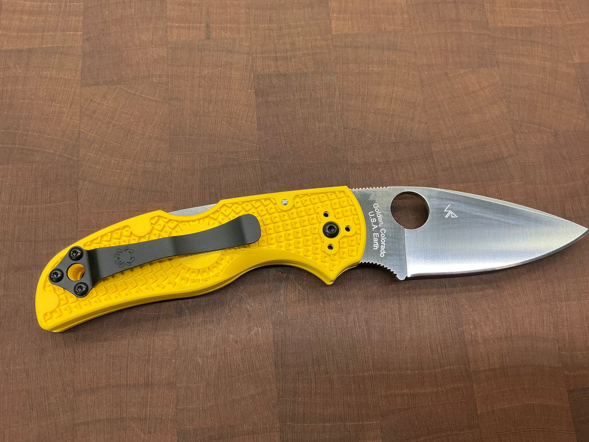 The blade is paired with a lightweight, injection-molded, fiberglass-reinforced-nylon (FRN) handle, a precision-machined high-strength back lock mechanism, and a broad-based four-position pocket clip that supports all possible carry options. Together these features, along with the blade’s fully accessible Trademark Round Hole™, make both carry and operation of this remarkable knife completely ambidextrous. The handle proudly showcases the characteristic high-visibility yellow color of our Salt Series and our signature Bi-Directional Texture™ pattern that ensures a positive grip both in and out of the water.
