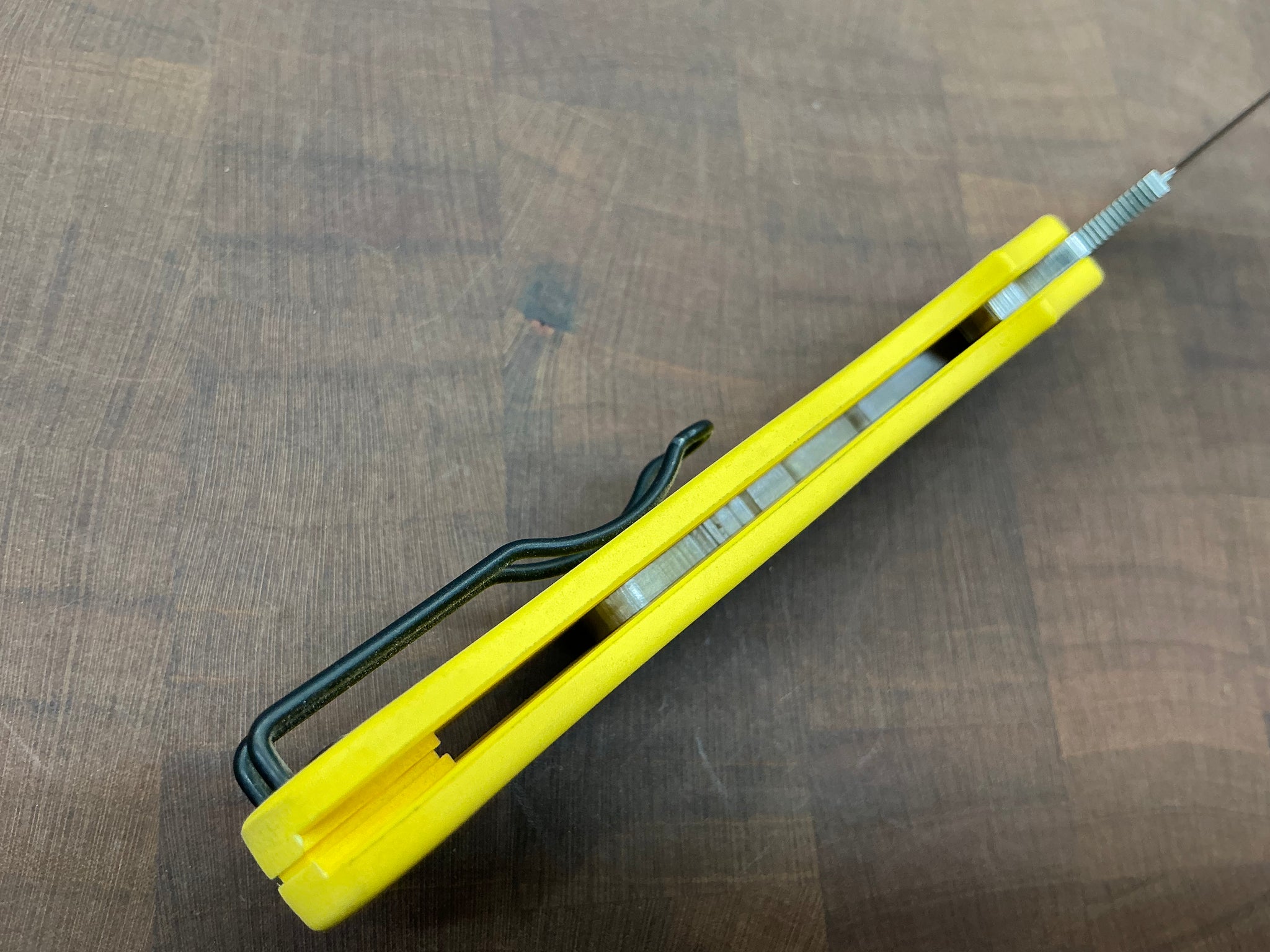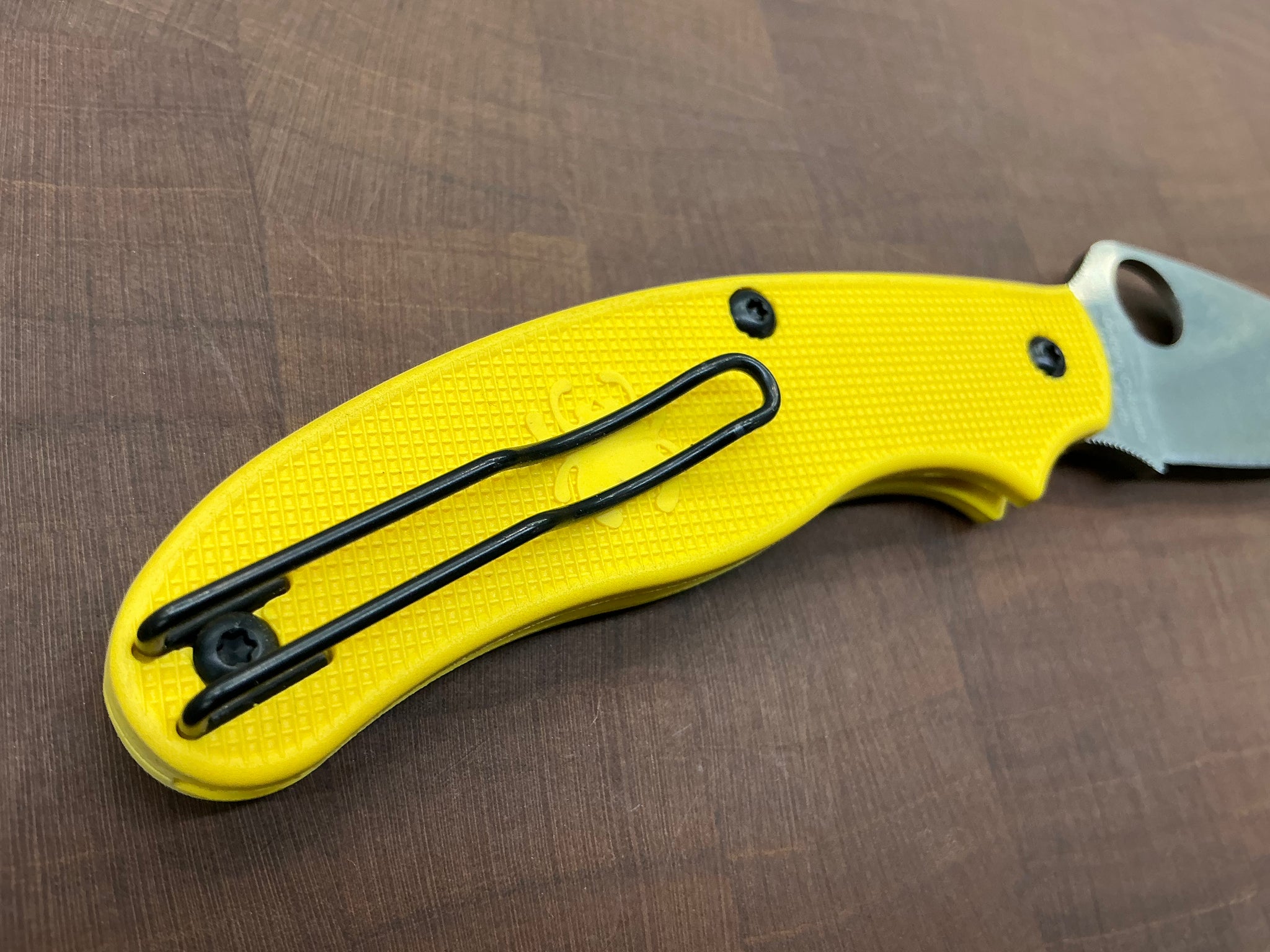 Originally developed in response to restrictive knife laws in England that prohibited the carry of one-hand-opening lock-blade knives, the UK Penknife™ was the trailblazer of Spyderco’s unique SLIPIT™ line of knives. These knives combine the defining features of our revolutionary CLIPIT® platform—a pocket clip and our Trademark Round Hole™ for one-handed opening—with the legal and social friendliness of a non-locking mechanism. This expression of the UK Penknife makes history again as the first non-locking member of our ultra-corrosion-resistant Salt® Series. Its full-flat-ground, leaf-shaped blade is precision machined from CPM® MagnaCut® steel—a revolutionary particle metallurgy steel that offers an impressive balance of edge retention, toughness, and extreme corrosion resistance. The blade is available in both PlainEdge™ and SpyderEdge™ formats and is housed in a high-visibility yellow handle constructed with injection-molded fiberglass-reinforced-nylon (FRN) scales and a marine-grade backspacer and hardware. A reversible deep-pocket wire clip completes the package, ensuring this fearlessly corrosion-resistant cutting tool is both left and right-hand friendly.