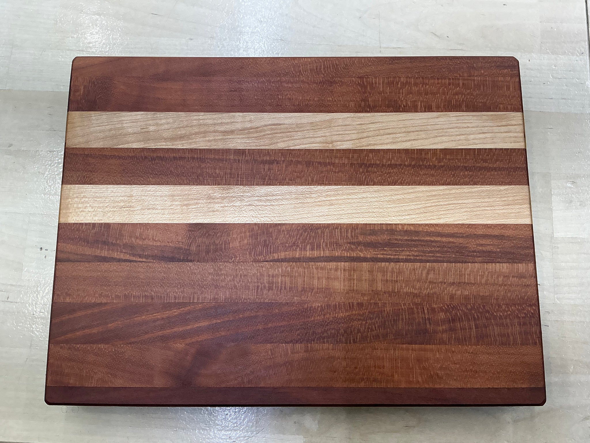 A Small Hard Cherry & Maple Side Grain cutting board by Paul Grimley Custom Woodworking.