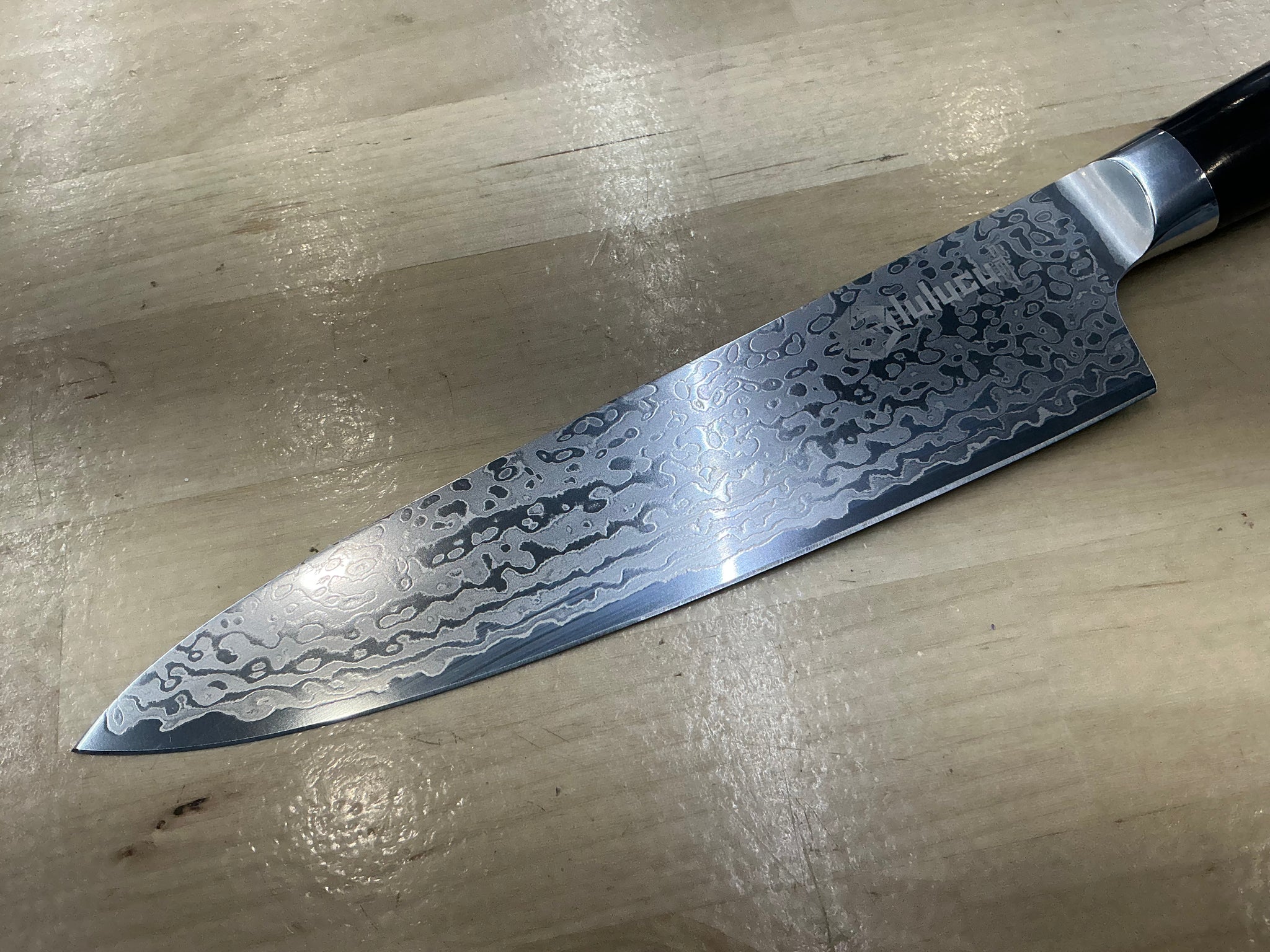 Features a resilient core of Japanese AUS-10 steel, layered with Damascus cladding for enhanced stain resistance and food release. Honed to a fine edge for lasting sharpness and balanced cutting performance..