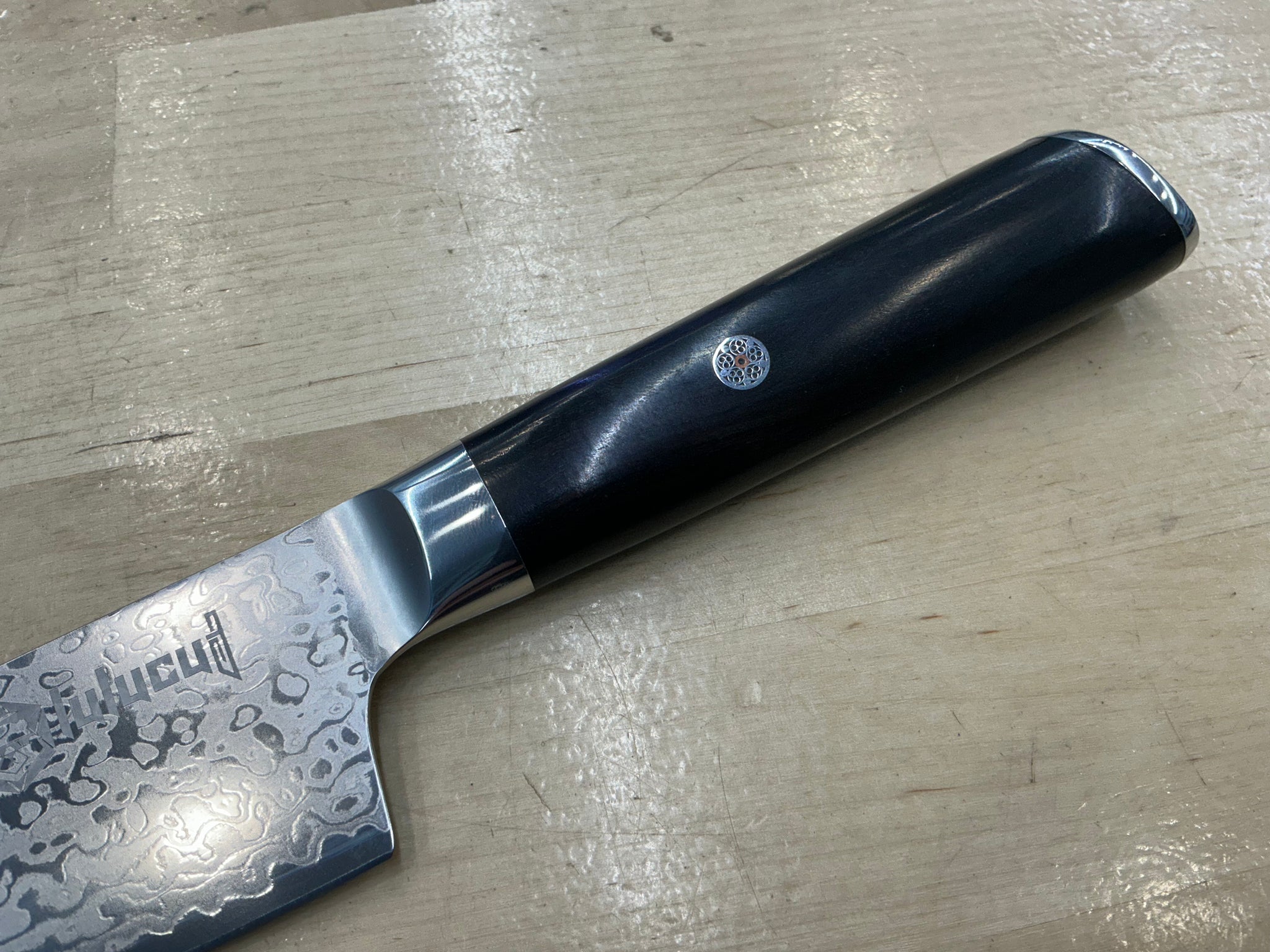 Each blade is forged from Japanese Damascus AUS-10 steel, renowned for its exceptional edge retention and corrosion resistance, elegantly clad in Damascus layers. Paired with a beautifully crafted black g-10 handle that offers a secure, comfortable grip and enhanced durability in the kitchen environment, the Phoenix Santoku delivers precise, reliable cutting performance designed for discerning users who value both form and function.
