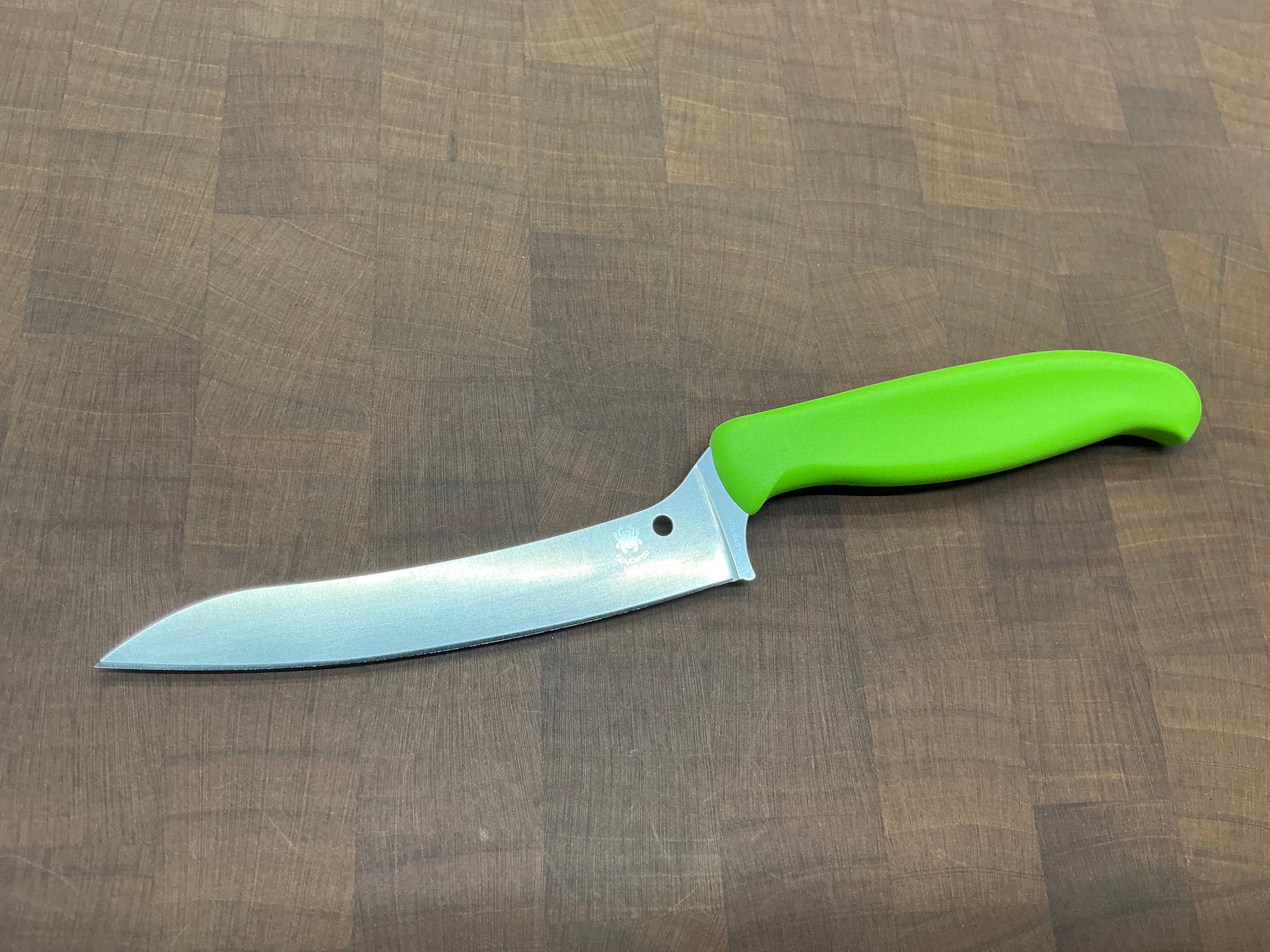 If you want a good quality kitchen utility knife at a great price, look no further than the Spyderco Z-Cut! It's made with a green polymer handle that provides a good grip, and a super slim and slicy CTS-BD1N blade.