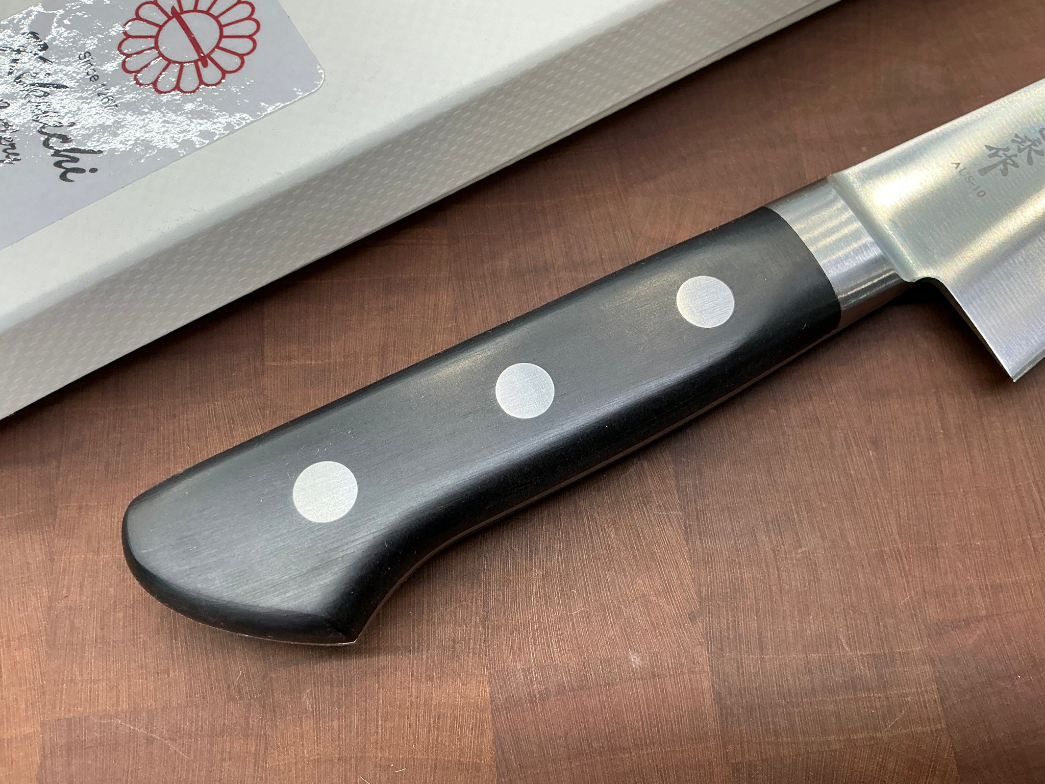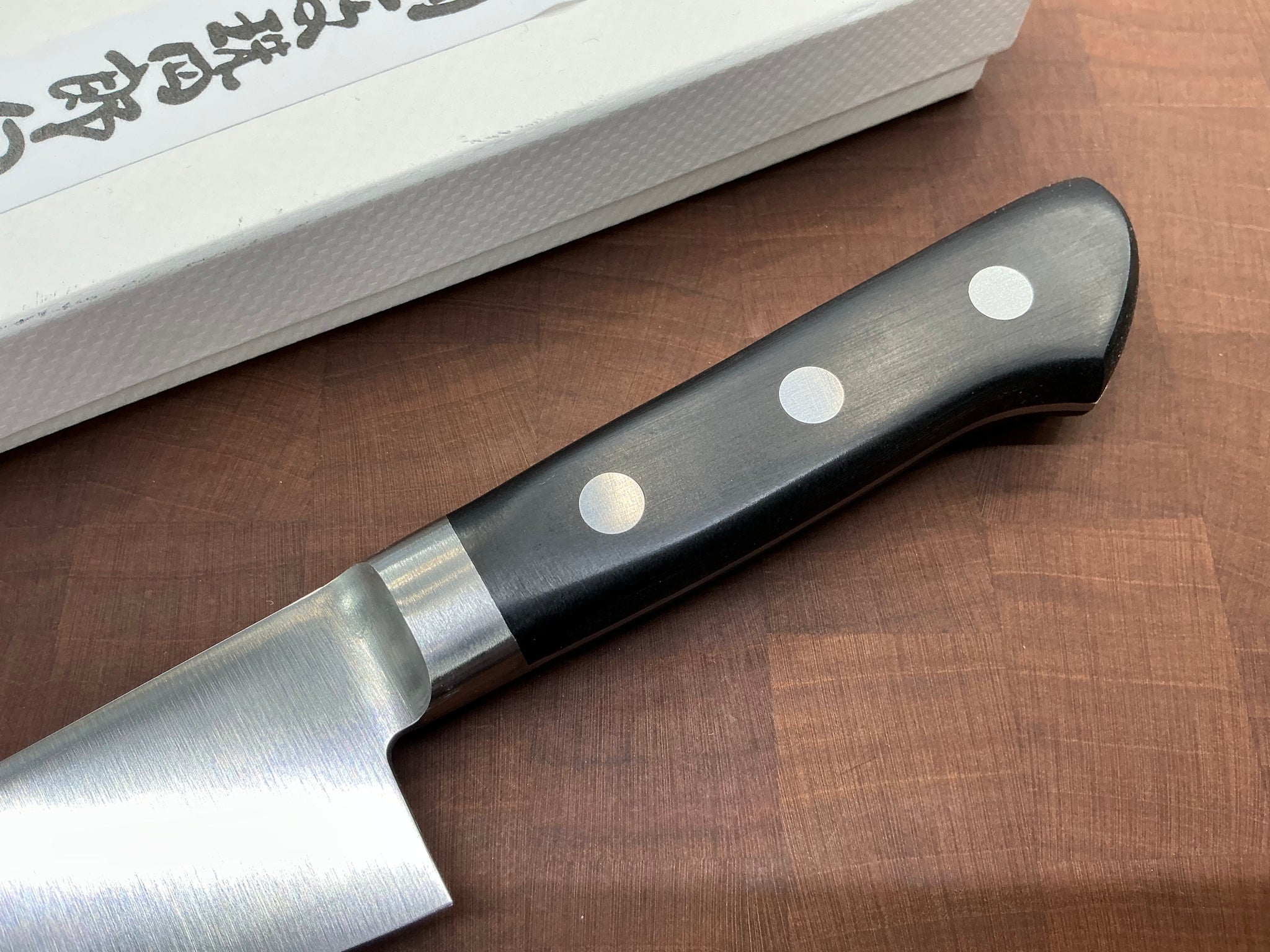 Molybdenum gives this blade a super fine edge ability, these are thinner than their German counterparts and stay super sharp. The GM series is a great value and holds a fantastic edge. This stainless allows for a thin and stiff blade that is easy to care for.