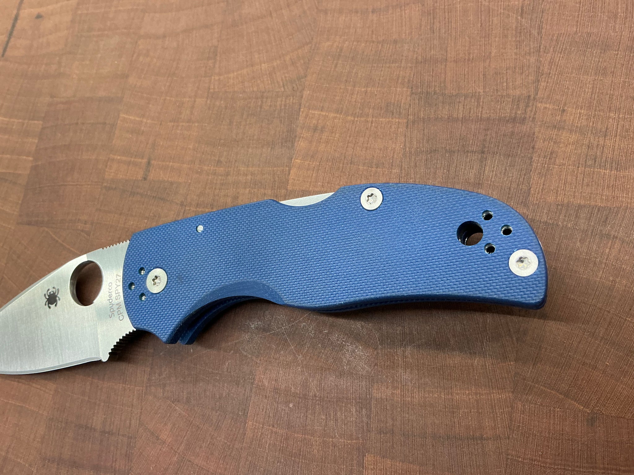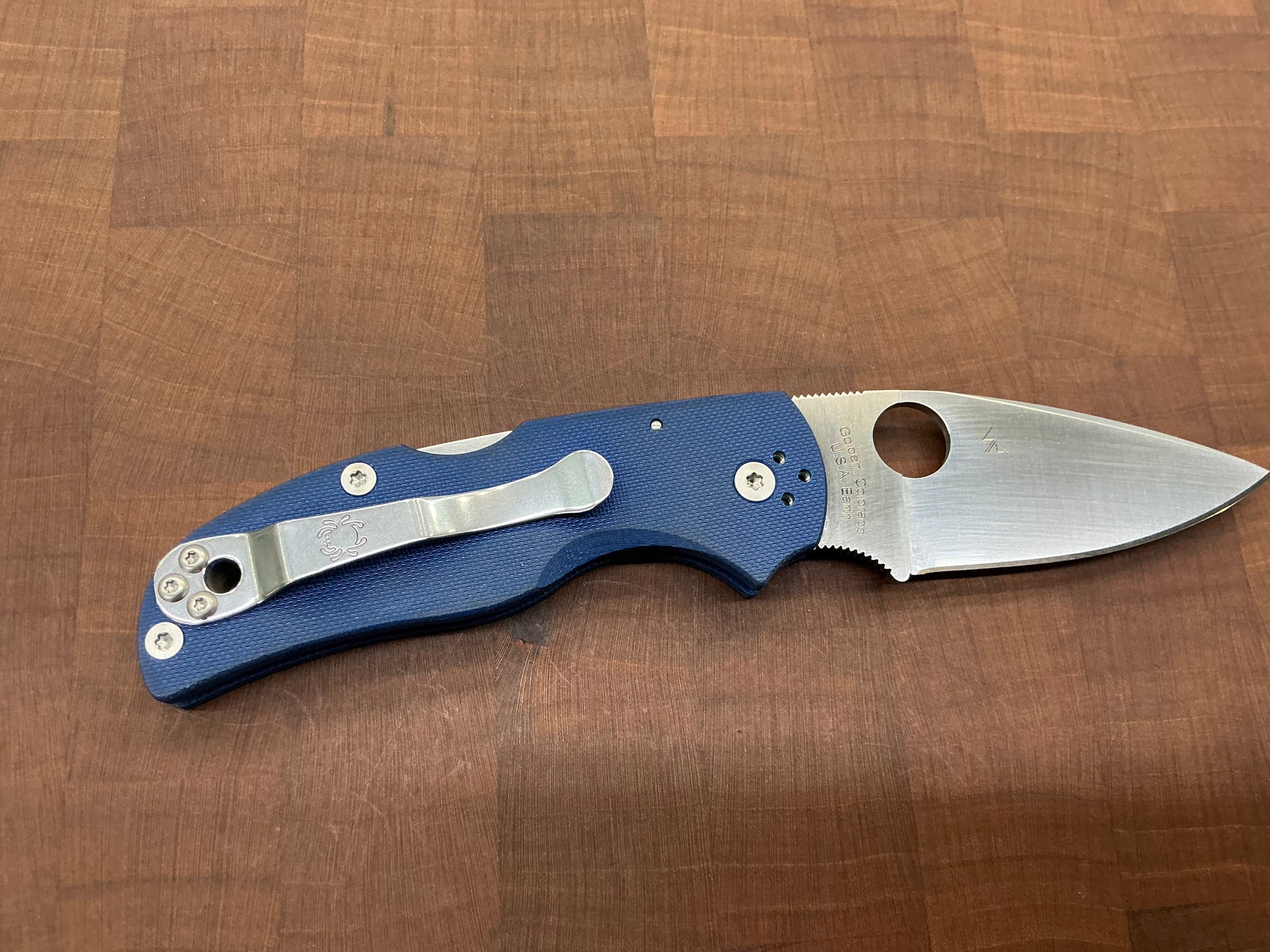 The Native 5 is one of Spyderco’s most revered folding knife designs. Throughout its evolution, it and its predecessors have also been proud symbols of the excellence of our US manufacturing efforts. It is therefore the ideal home for a blade crafted from our proprietary US-made steel—CPM SPY27. Developed exclusively for Spyderco by Crucible Industries, SPY27 is enriched with chromium, niobium, vanadium, and its signature element, cobalt, to offer a remarkable balance of toughness, edge retention, and corrosion resistance. The blade of this knife capitalizes on all these properties, showcasing them in a linerless handle featuring peel-ply-textured G-10 scales in cobalt blue— one of the signature colors of our SPY27 family of knives. To support all carry options, it also includes a polished four-position pocket clip.