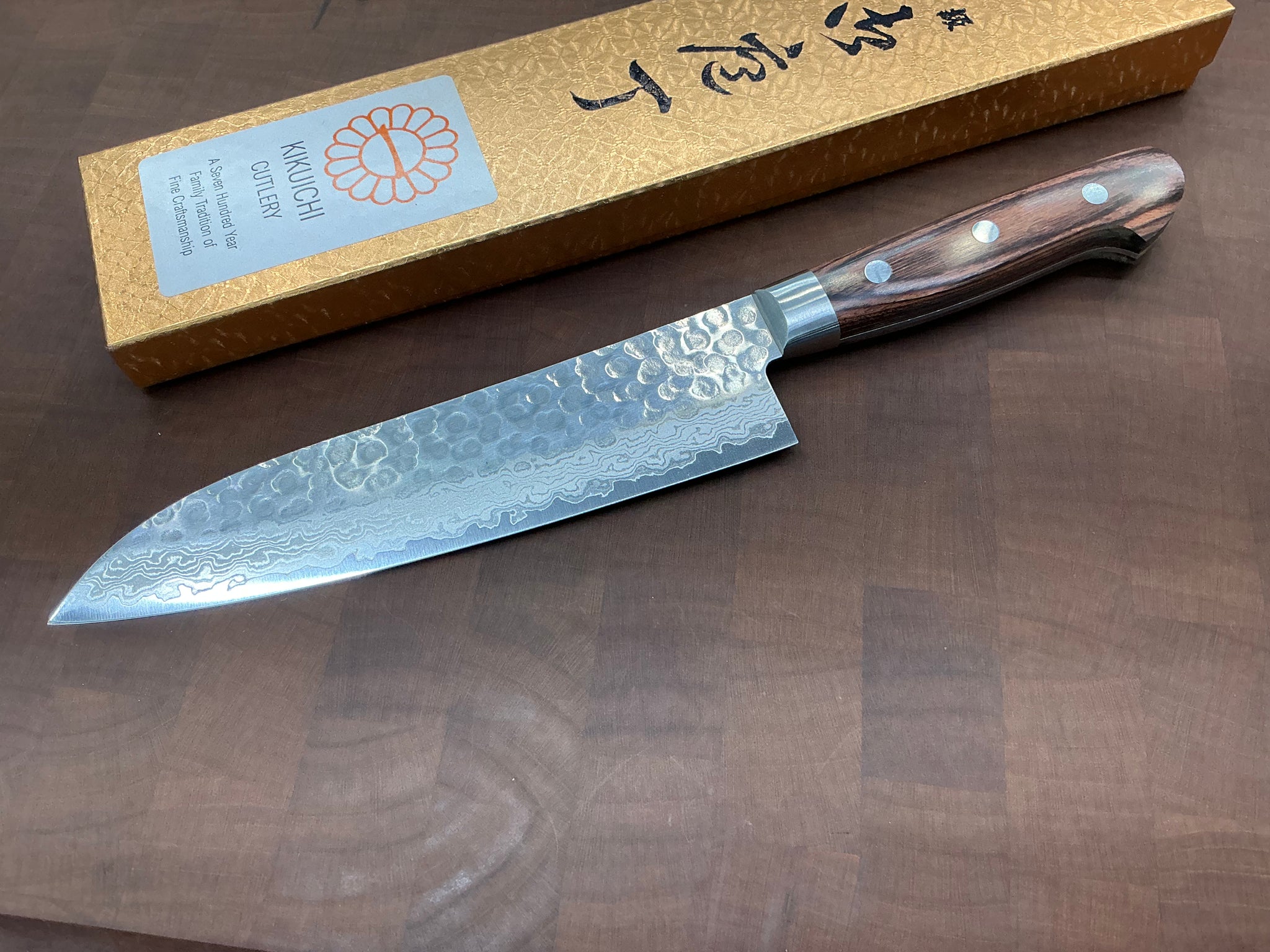 Hand engraved with the Kikuichi chrysanthemum logo.
