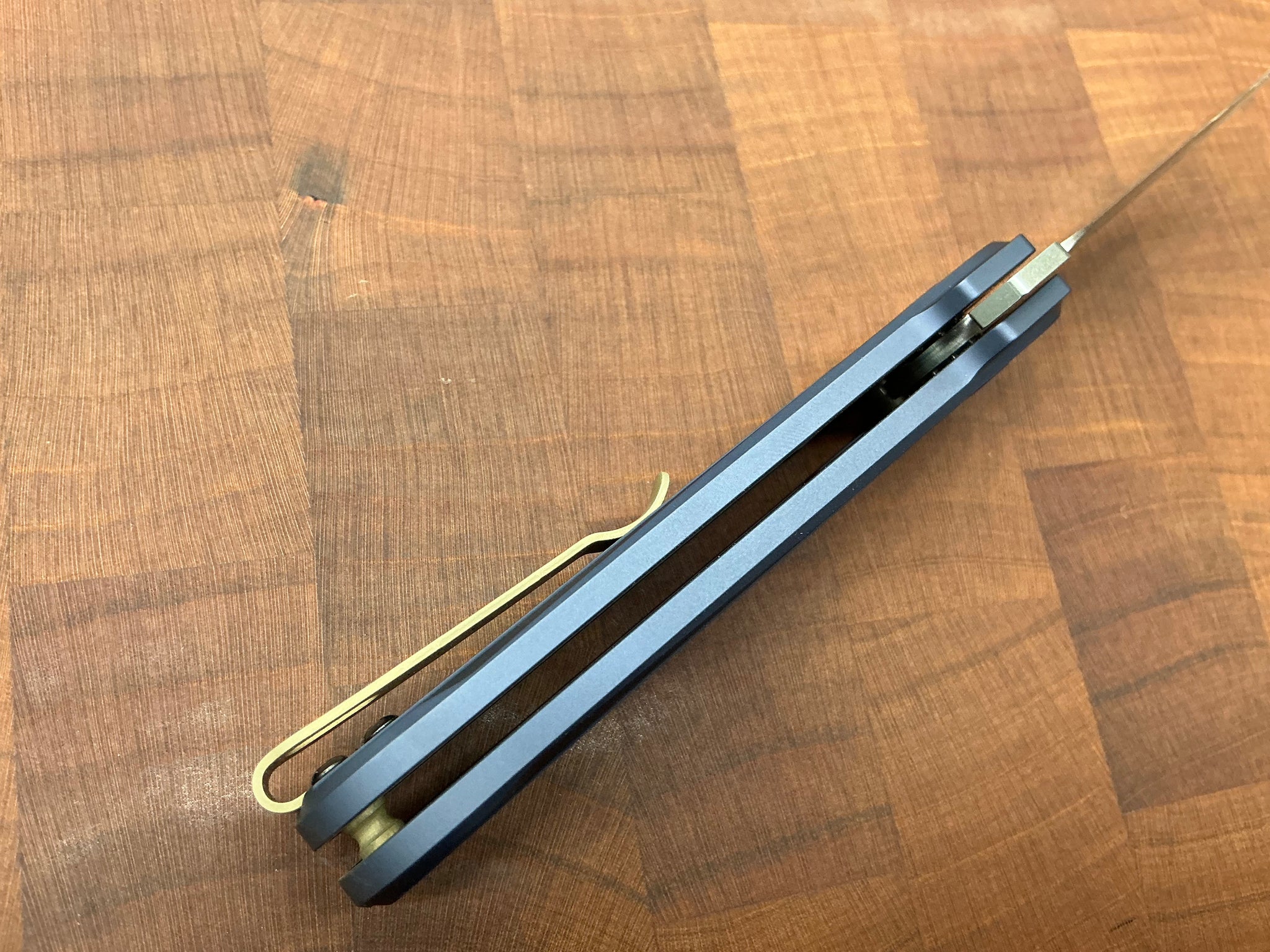 Sleek, modern, and fast. Inspired by the symmetry and circular pommel of traditional daggers, we're driving into flippers once again with a compact and fidgety new addition in the 491 Lowden™. Featuring our AXIS® Lock flipper mechanism for a smooth, snappy deployment, the 491 wields an M390 spear-point blade built for a fine, long-lasting edge. Outfitted with lightweight, milled Crater Blue anodized aluminum handle scales which offer a palm-filling grip, along with a new deep-carry pocket clip and FDE accents, the Lowden™ is an ultra-modern flipper built for performance and style.