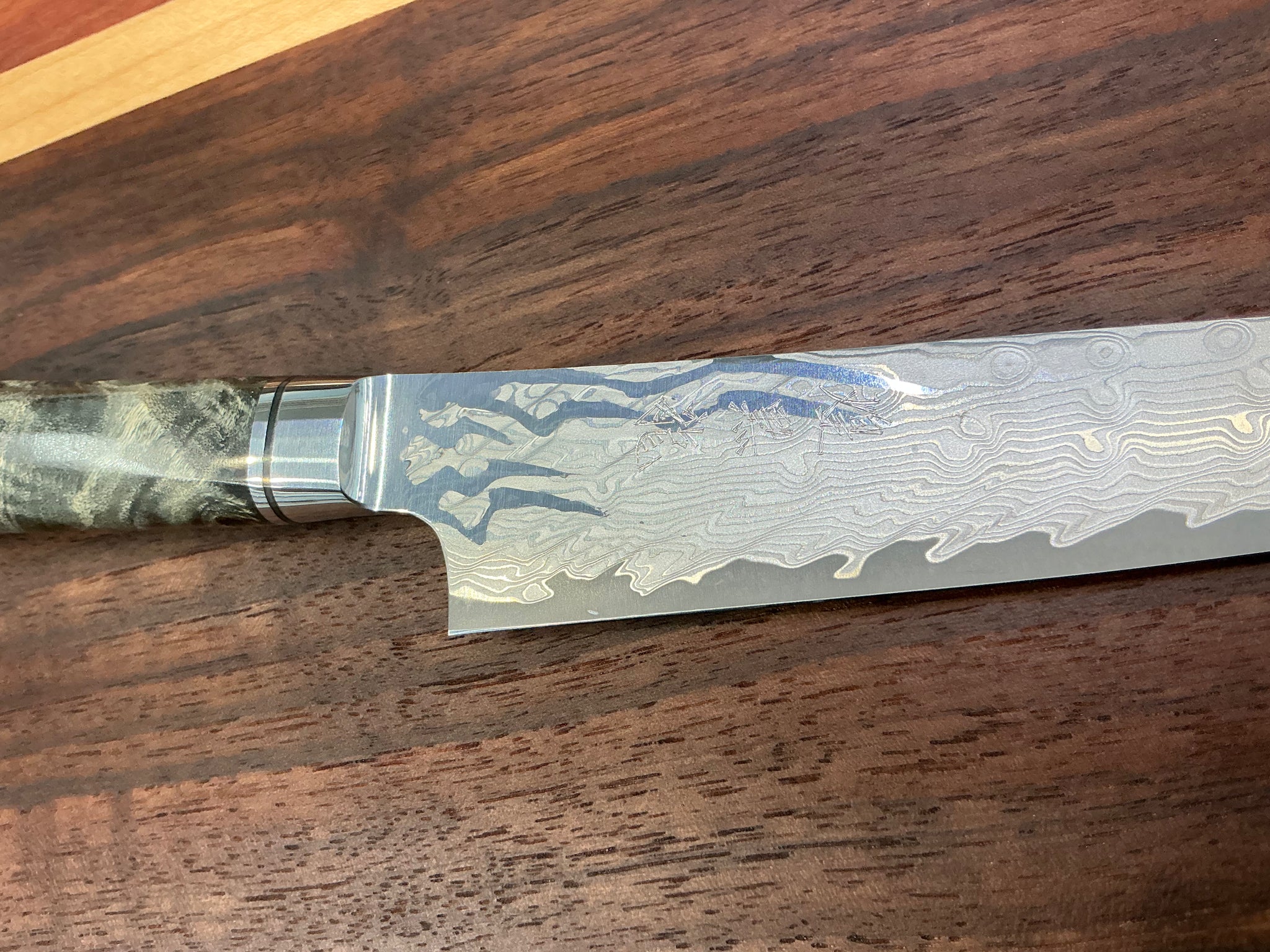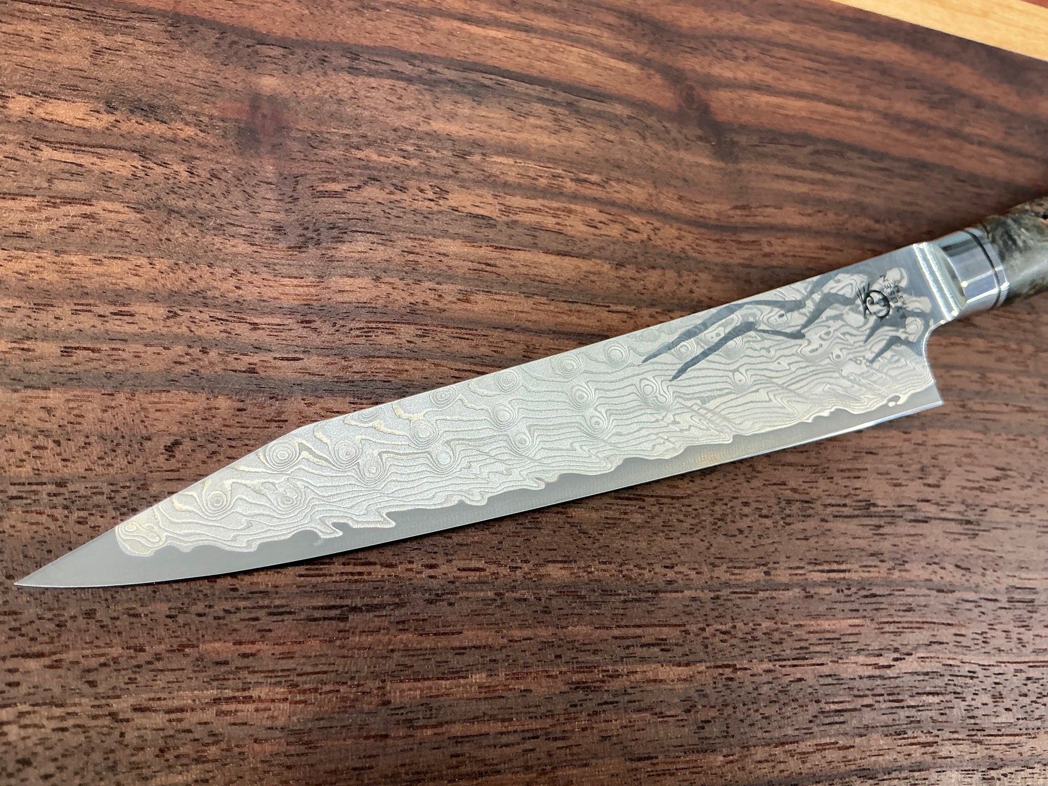 De plus, 99 couches de métal de base en nickel damas sont martelées par des artisans qualifiés pour créer un motif damas unique, ce qui donne une lame d'une profondeur et d'une beauté sans précédent.