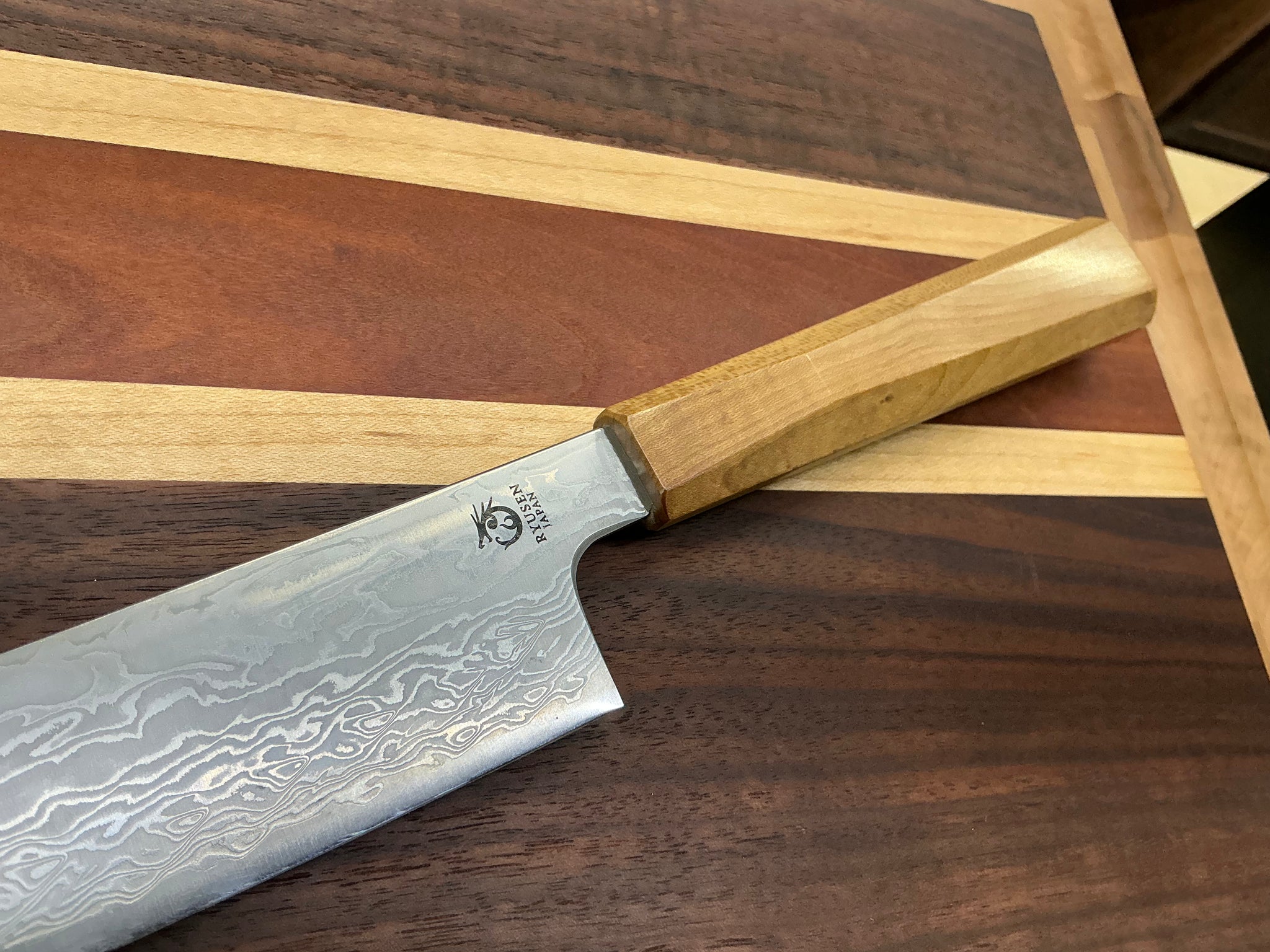 High-quality ATS314 steel, which demonstrates amazing sharpness in the knife and hairdressing field, covered between 63 layers of stainless steel and forged with Ryusen's main forging technology.